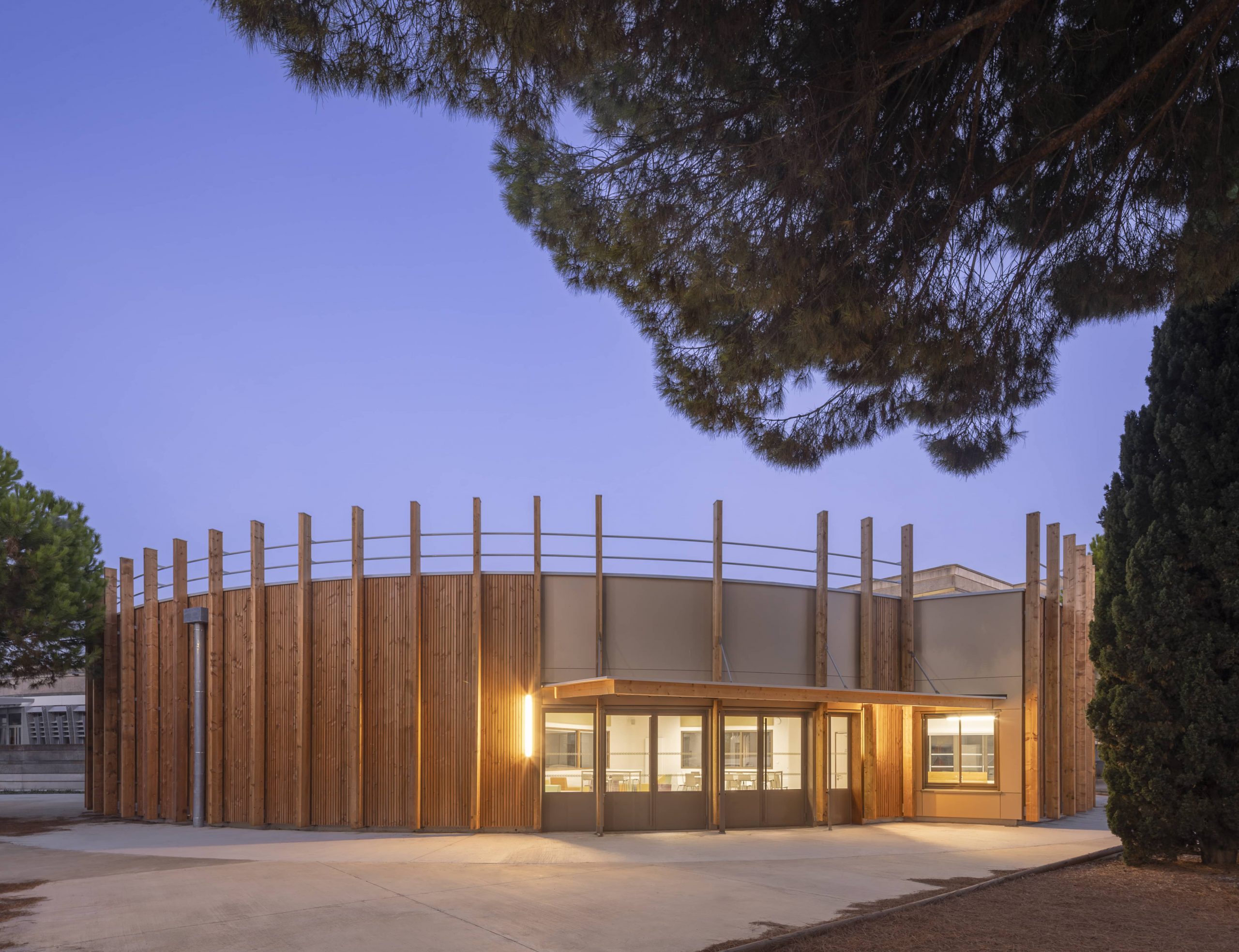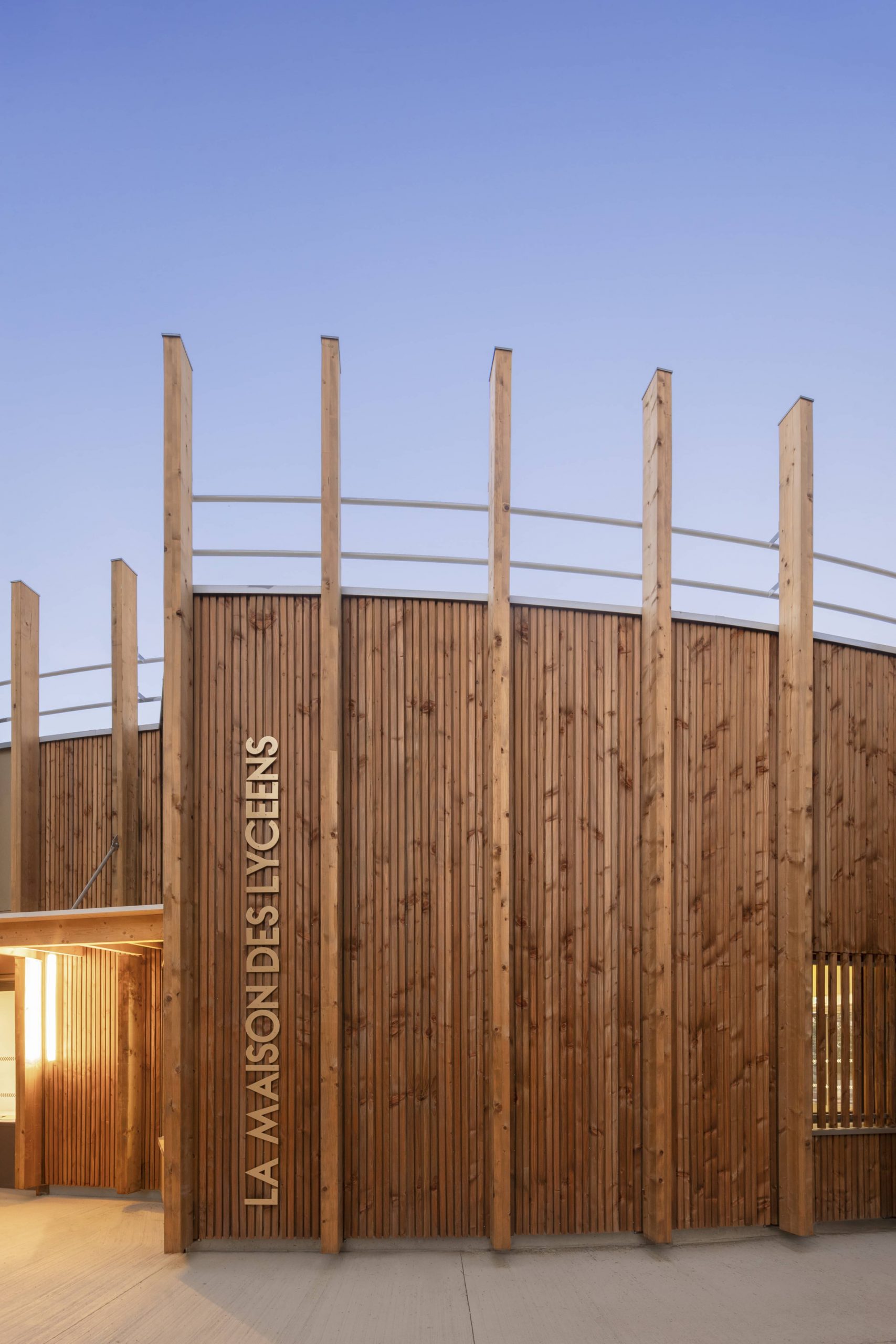 Sans chercher à rivaliser avec l’existant dont le caractère offre au lycée un cadre d’étude remarquable, nous avons développé une architecture à la fois rationnelle et efficace tout en restant sensible et respectueuse de l’environnement, avec un bâtiment en bois, 100% biosourcé.